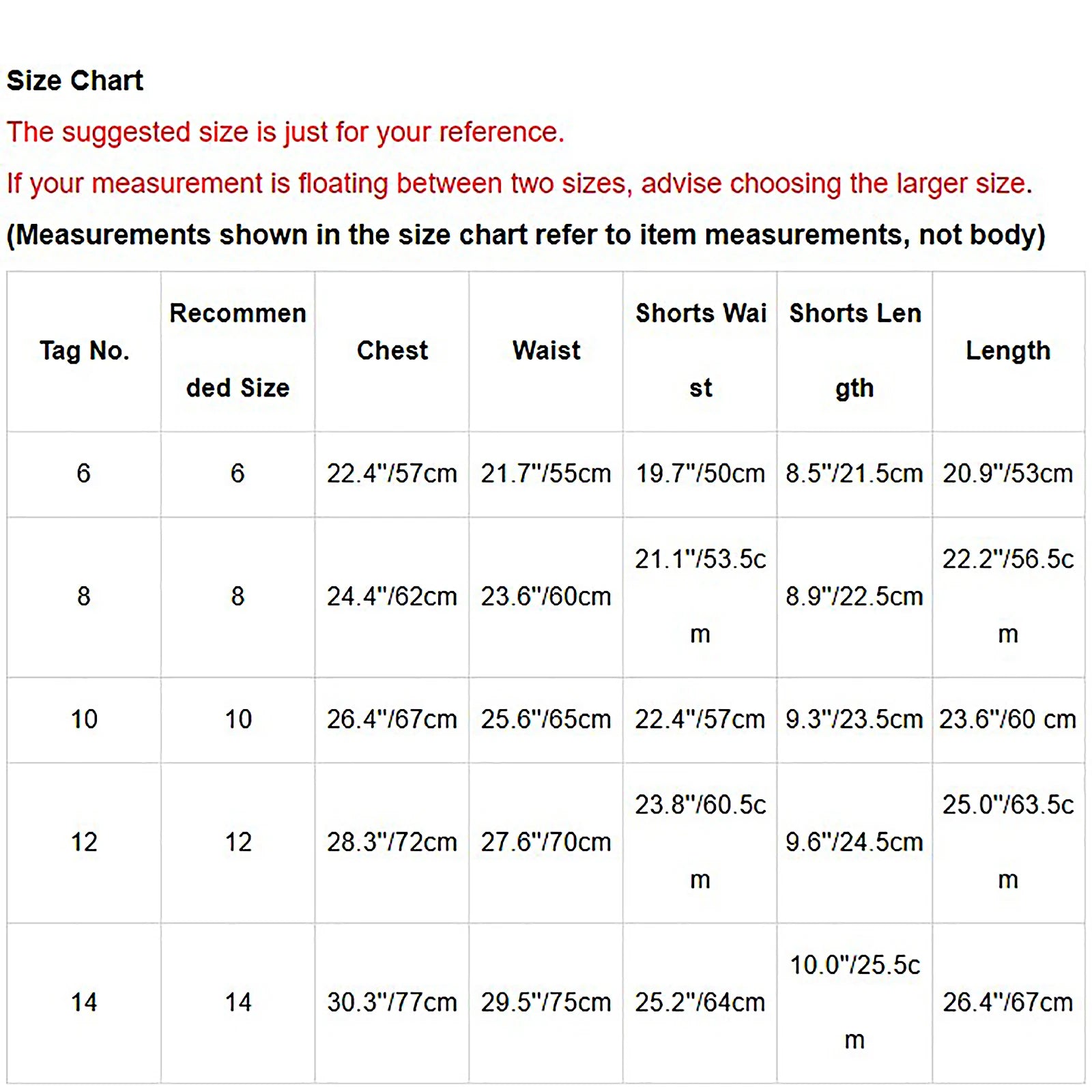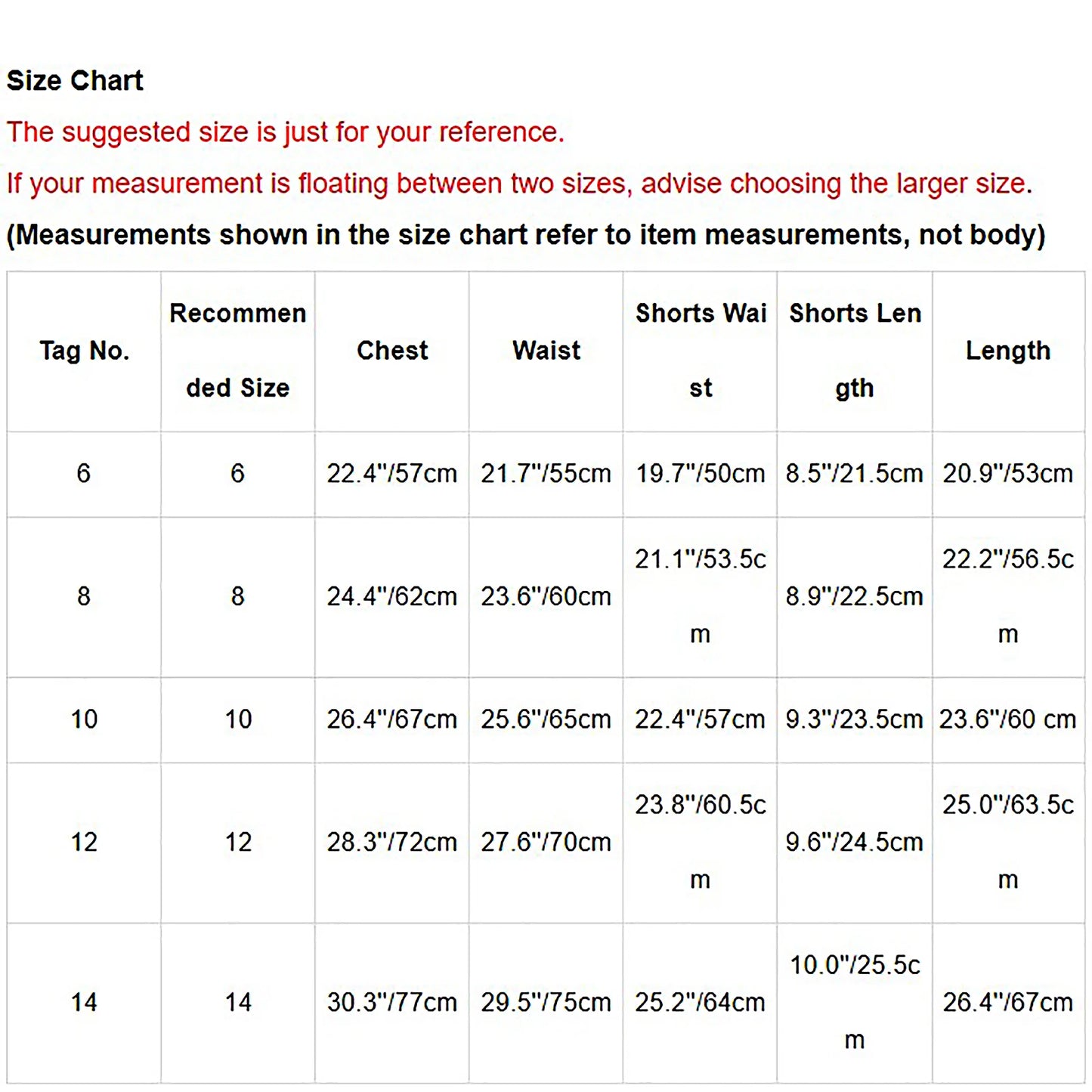 Tag No. | Recommended Size | Chest | Waist | Shorts Waist | Shorts Length | Length |