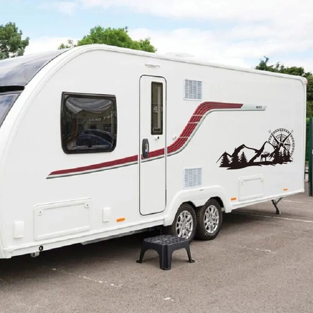 Transform your recreational vehicle with our 2PCS Car Stickers Mountain Graphics, specially designed for Motorhome, Horsebox, Caravan, and RV Camper Van body decor. These high-quality vinyl decals are the perfect way to personalize your camper van, bringing a touch of adventure to your travels. Made from durable PVC, these campervan graphics are resistant to fading and ensure a long-lasting finish that will withstand the rigors of the road.