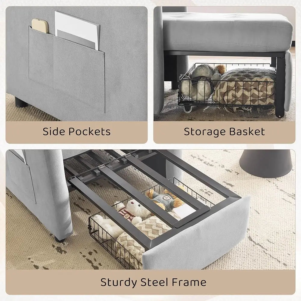 Convertible Sleeper Sofa Chair Bed with Storage and Pillow