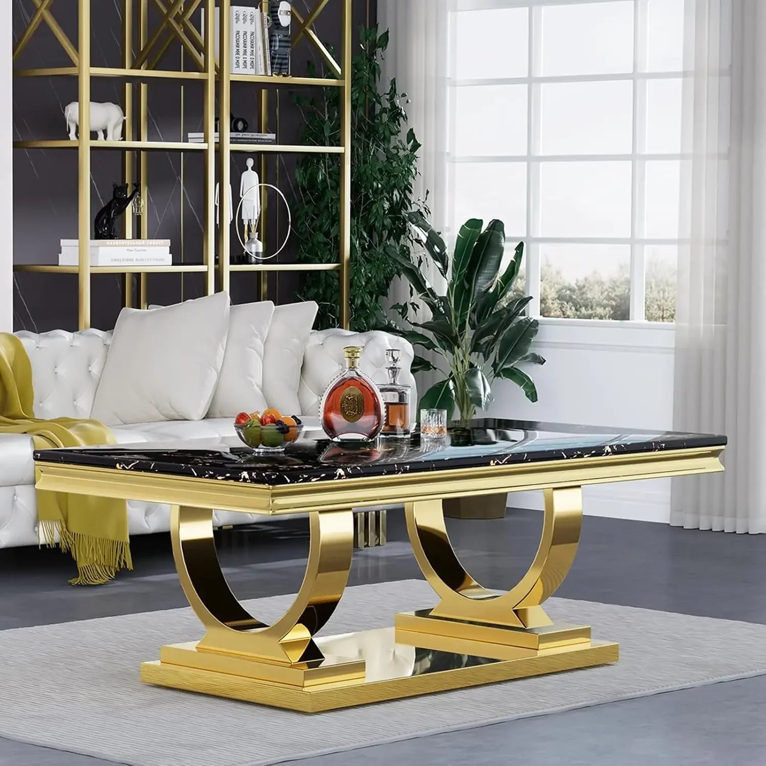 Why settle for ordinary when you can have extraordinary? This modern coffee table stands out in the market with its combination of stylish aesthetics and durability. Its unique U-shaped stainless steel base not only provides stability but also adds a contemporary touch to your living area.