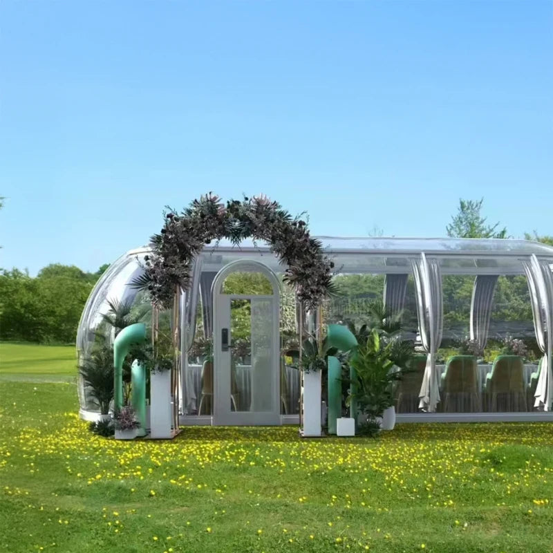 Experience the beauty of nature while staying protected with the 5.9m Outdoor Dome Tent. This stunning transparent starry sky capsule tent combines modern style with functionality, making it the ideal choice for camping enthusiasts and outdoor gatherings. Designed as a spacious igloo tent, it accommodates 6 or more people comfortably, creating a unique environment for you and your loved ones to enjoy.