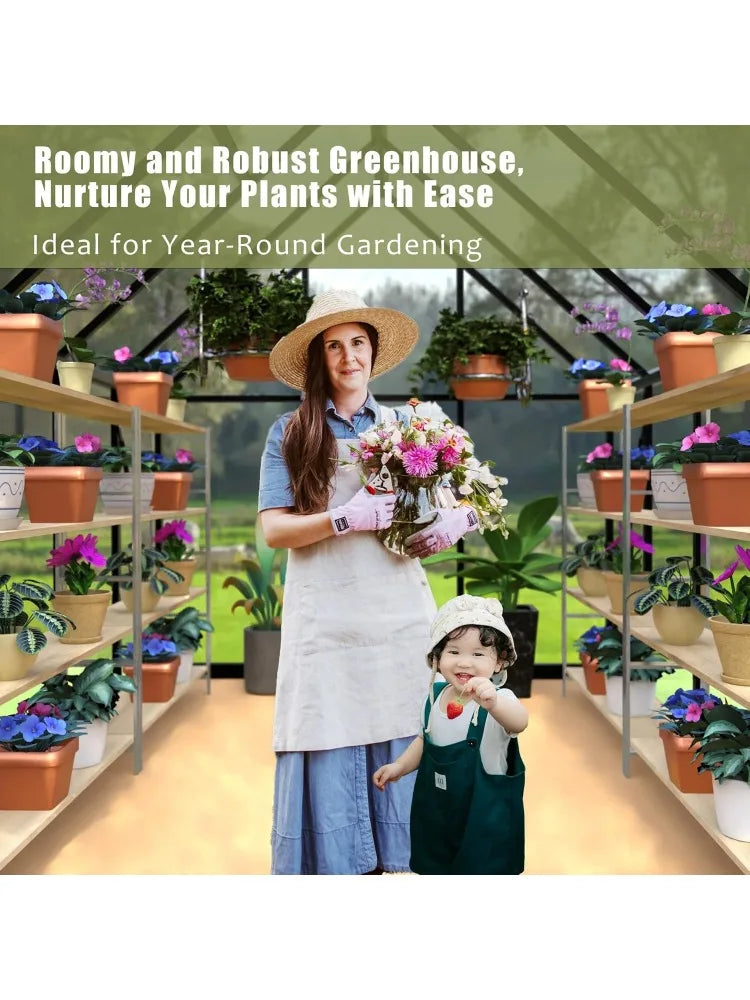 Transform your gardening experience with the 6 x 4 FT Polycarbonate Greenhouse, specially designed for those who want to cultivate their plants all year round. This winter greenhouse for outdoors is perfect for both novice and seasoned gardeners looking for a reliable solution. Featuring a robust heavy-duty walk-in design, this outdoor greenhouse is constructed from high-quality polycarbonate that ensures durability and optimal light diffusion.