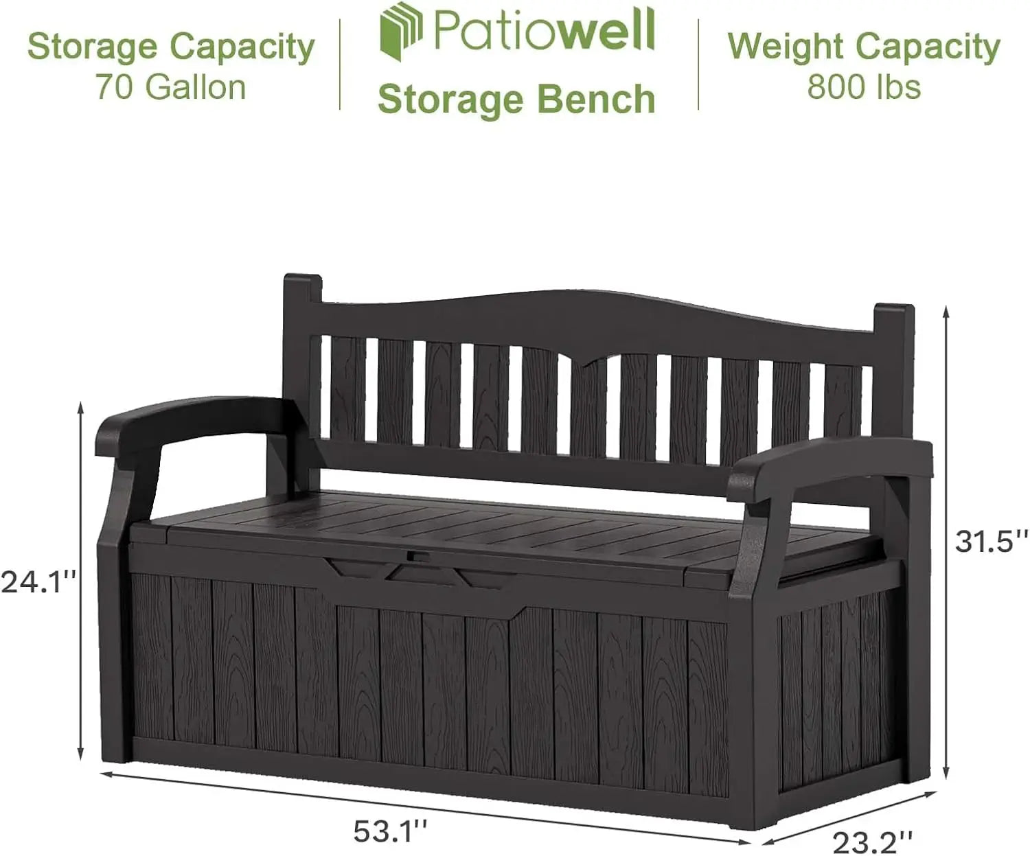 XMSJ 70 Gallon Plastic Storage Bench Water Resistant Deck Box for Patio Furniture Garden Tools Pool Outdoor
