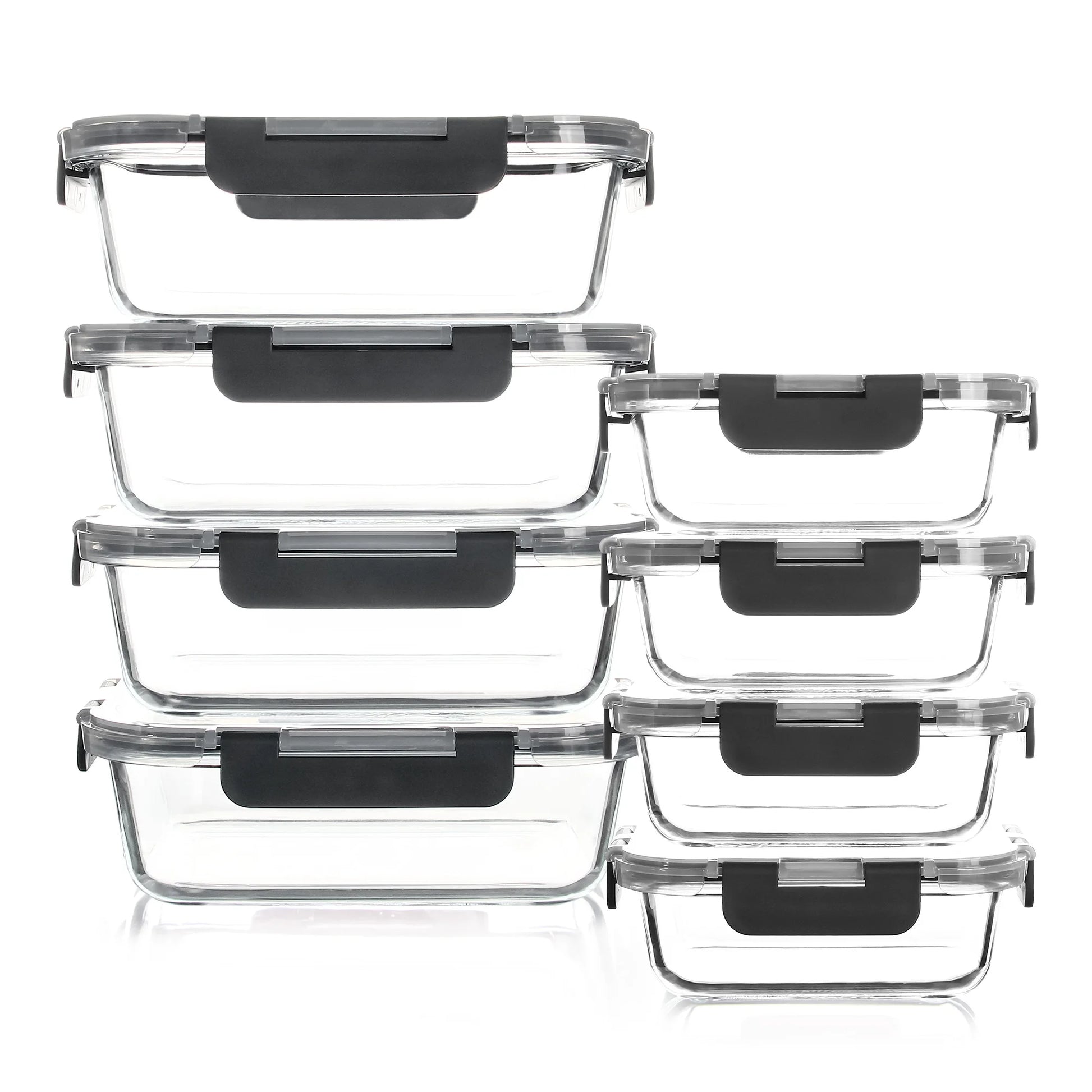 8 Piece Glass Food Storage Containers Set BPA Free Leakproof Microwave and Oven Safe Borosilicate Glass Lock Lid
