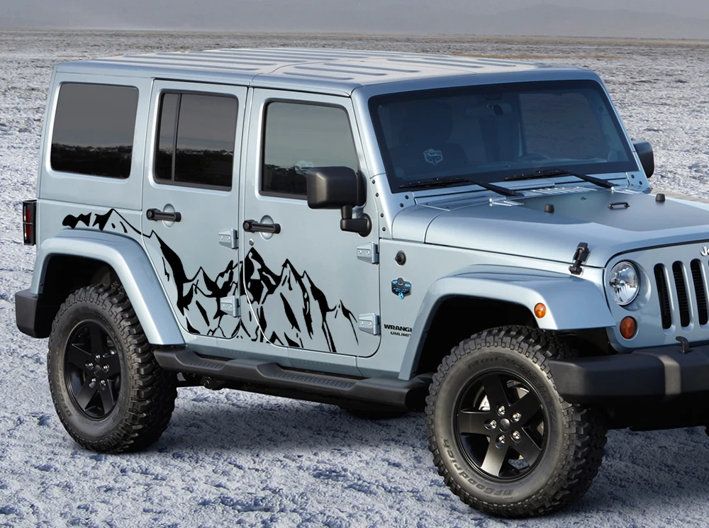 Transform your Jeep with our Car Side Stickers for Jeep Wrangler JK JL TJ YJ. These stunning mountains model vinyl film trim decals are designed to enhance the exterior of your vehicle, making it stand out on the road. Crafted from high-quality PVC material, these decals are perfect for adding a touch of adventure to your ride while protecting the surface of your vehicle from scratches and wear.