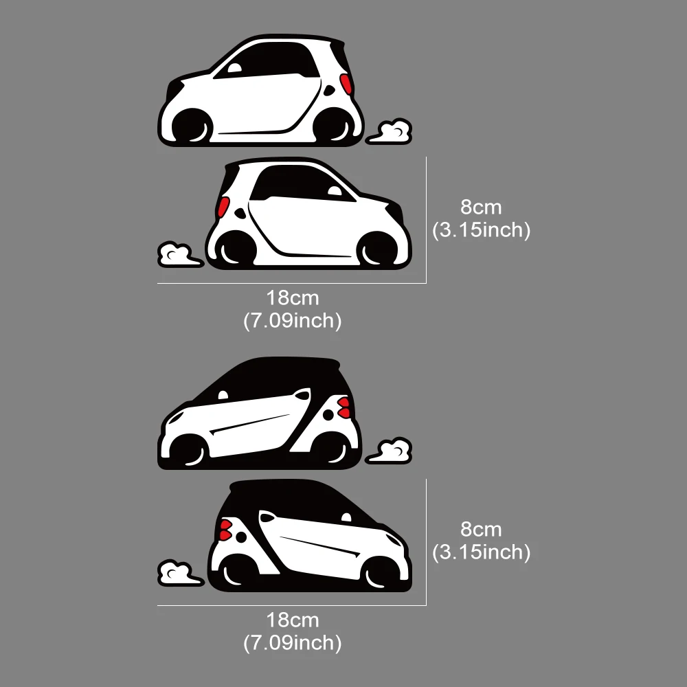 This car accessory sticker is not just about looks; it's about expressing your personality. The cartoon design brings a playful vibe that is sure to turn heads and spark conversations wherever you go. Measuring 18 cm in length and 8 cm in width, these decals are perfectly sized to fit your Smart Fortwo without overwhelming its sleek design.