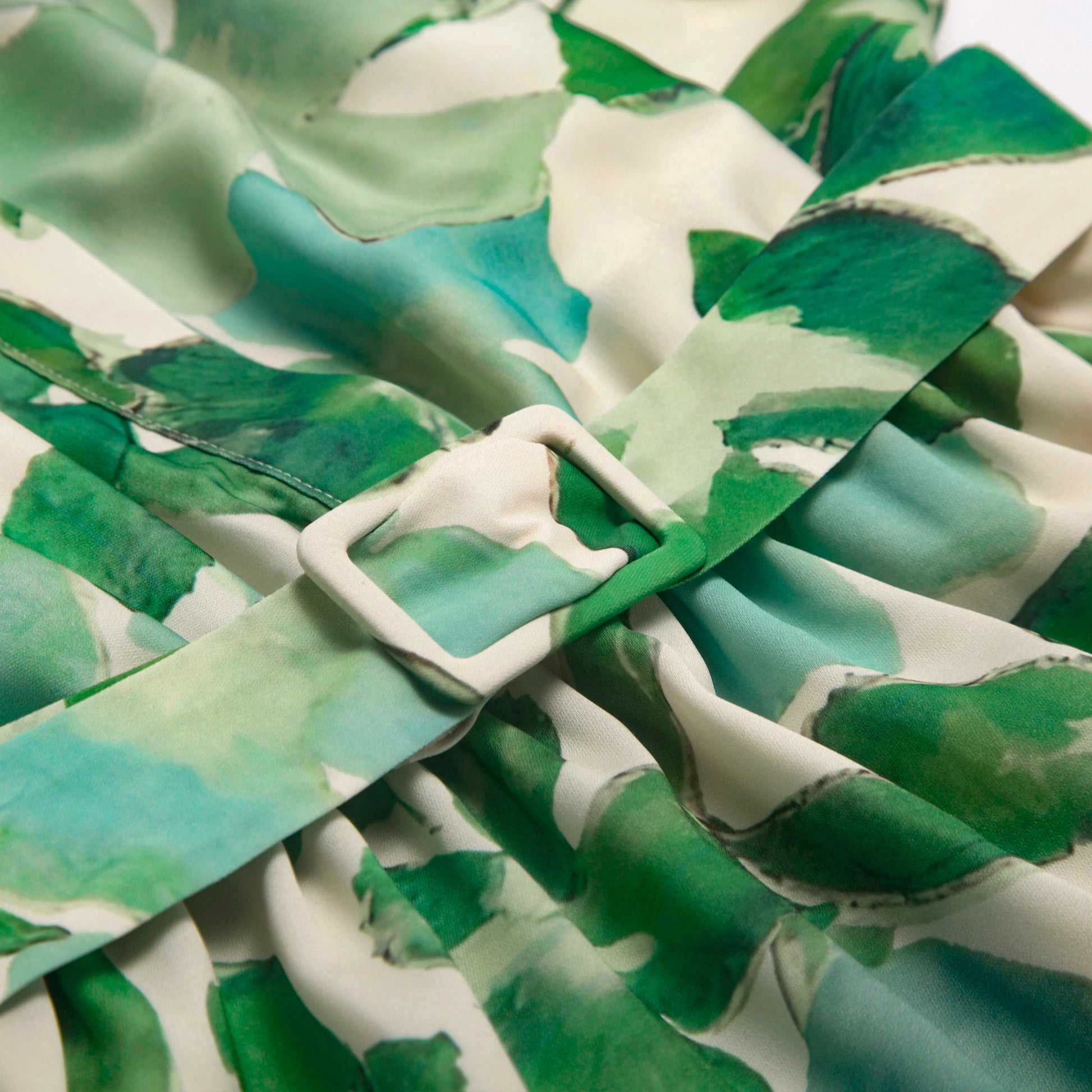 Elegant Summer Dress with Pleated Design and Belted Waist