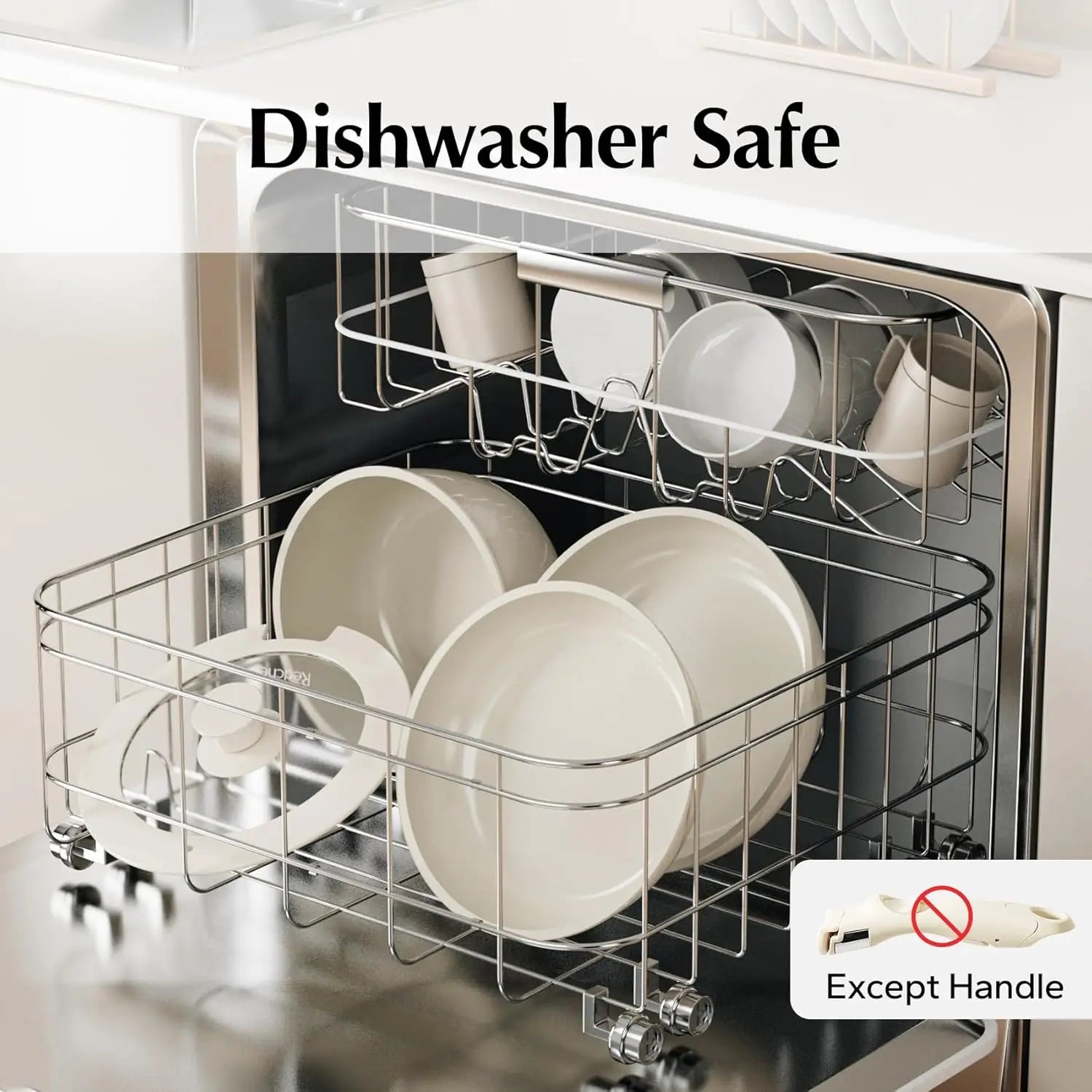 Ceramic Nonstick Cookware Set with Detachable Handle 5 Pieces