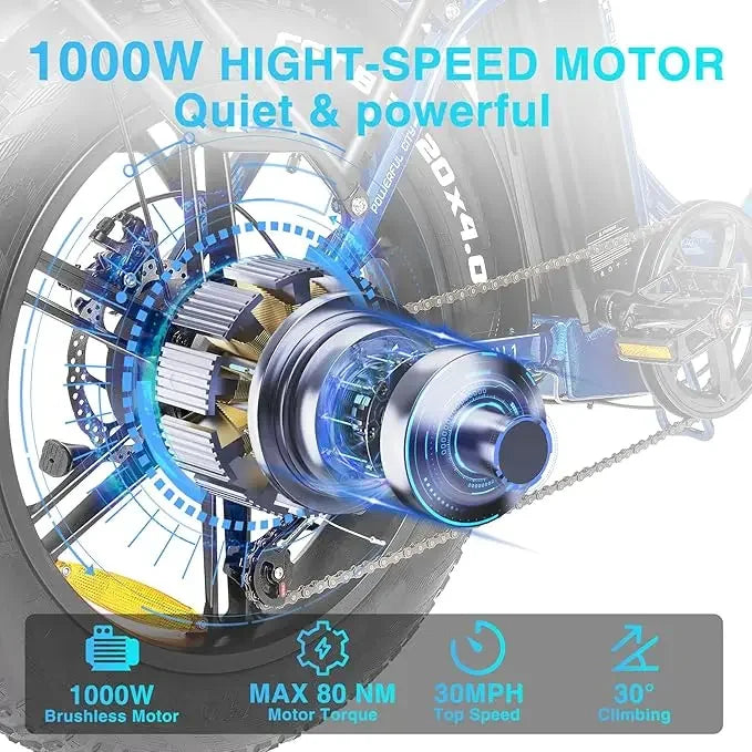 Folded Electric Bike 1000W Fat Tire Rear Seat Front Basket