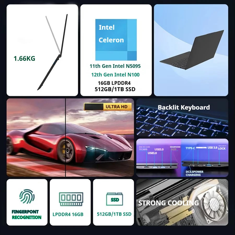 - Powerful Performance: Intel Celeron N5095 processor for multitasking and efficiency.