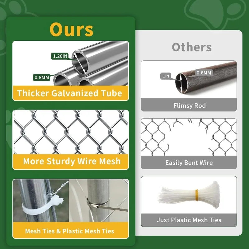 - Sturdy construction: a rugged frame uses 1.26-inch galvanized metal tubing and 2.4 mm thick steel mesh to resist rust and stand up to energetic dogs.