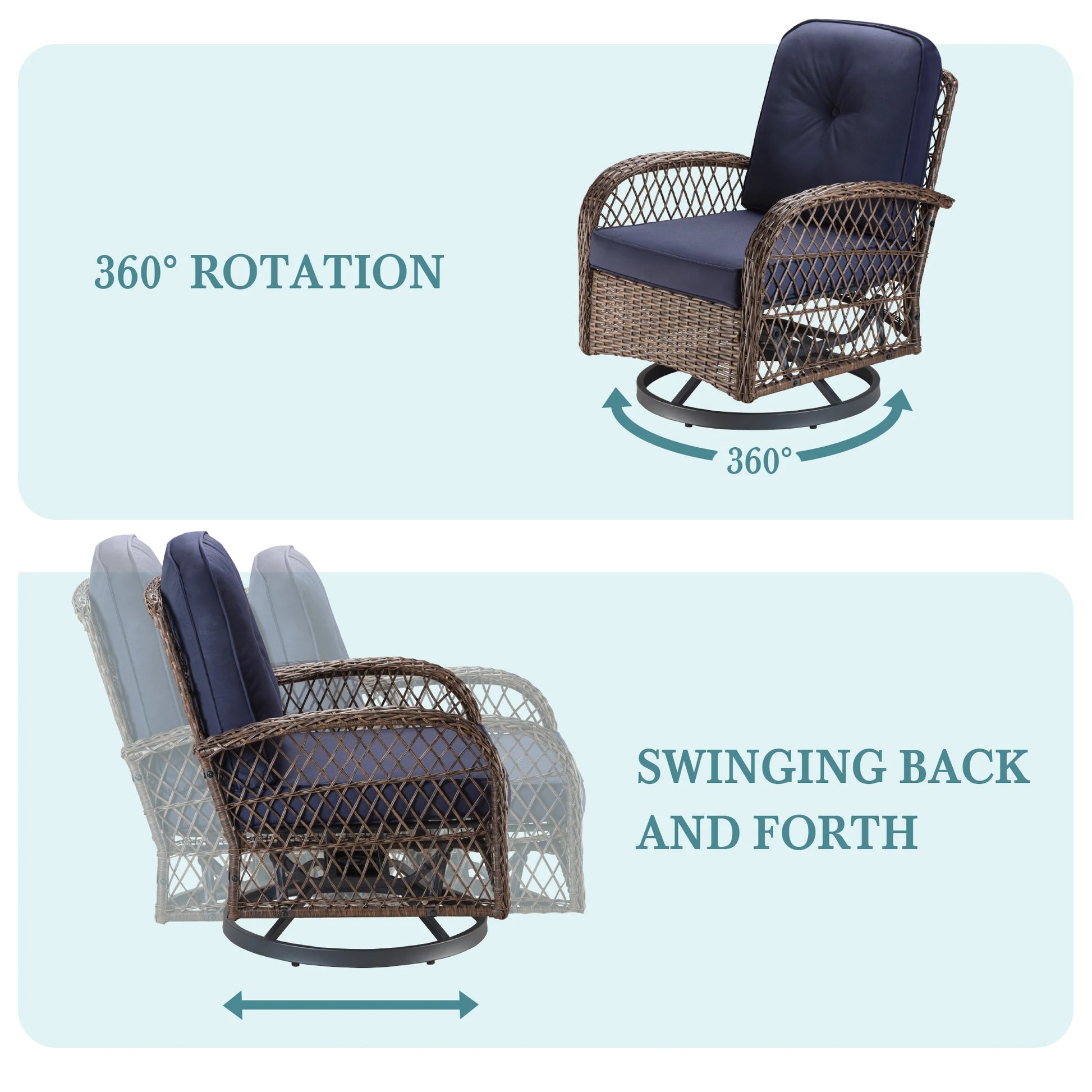 This outdoor patio furniture set not only enhances the visual appeal of your space but also offers exceptional functionality. The rotating feature of the rocking chairs allows for a unique experience, making it different from typical patio sets. With dimensions that fit comfortably in various outdoor areas, this set is perfect for intimate gatherings or peaceful solitude.