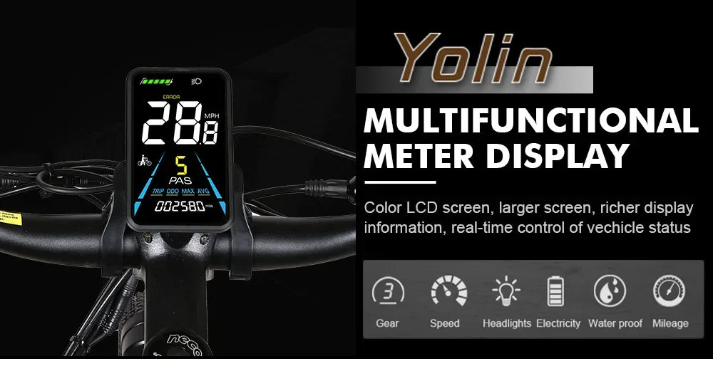- Fat tires provide stability and confident grip on city streets, wet surfaces, snow, and light off‑road terrain, so you ride with control in every season.