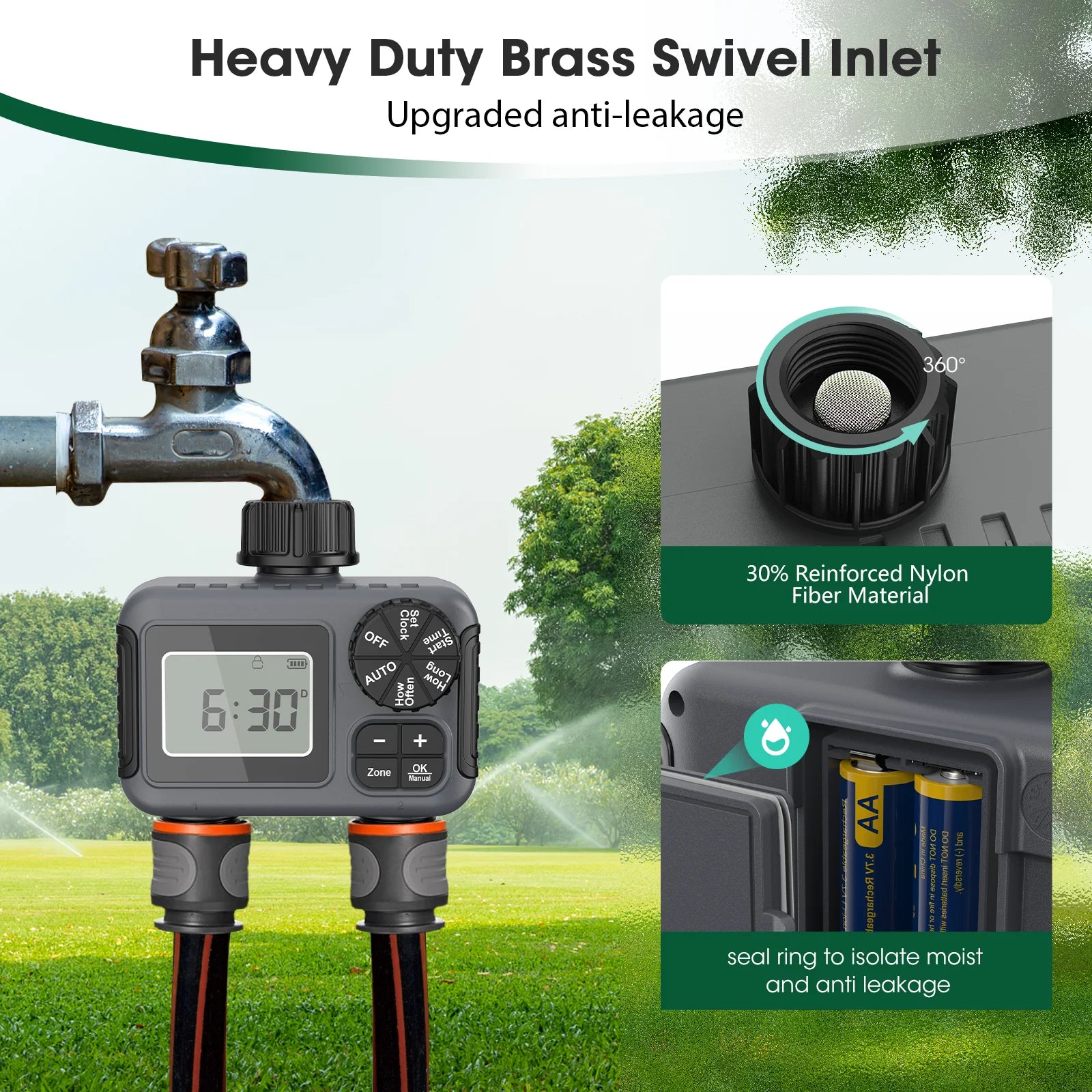 - Dual Zone Control: Independently manage two zones for optimal watering strategies tailored to different plant needs.