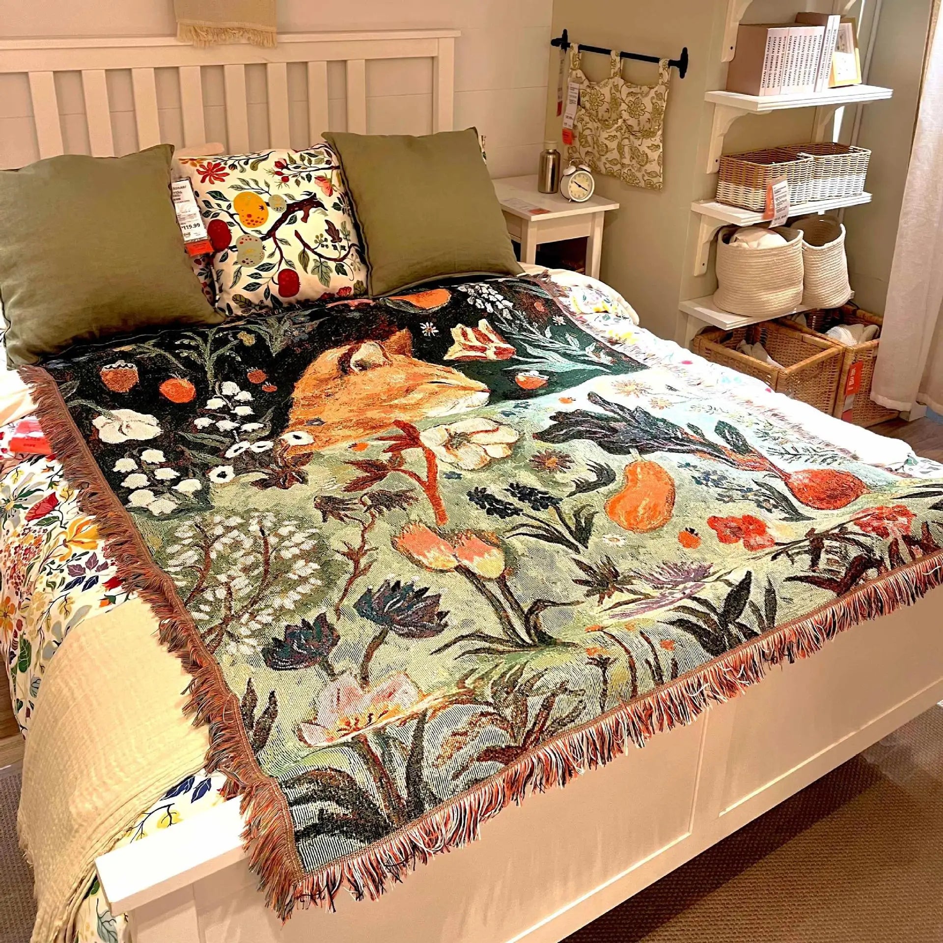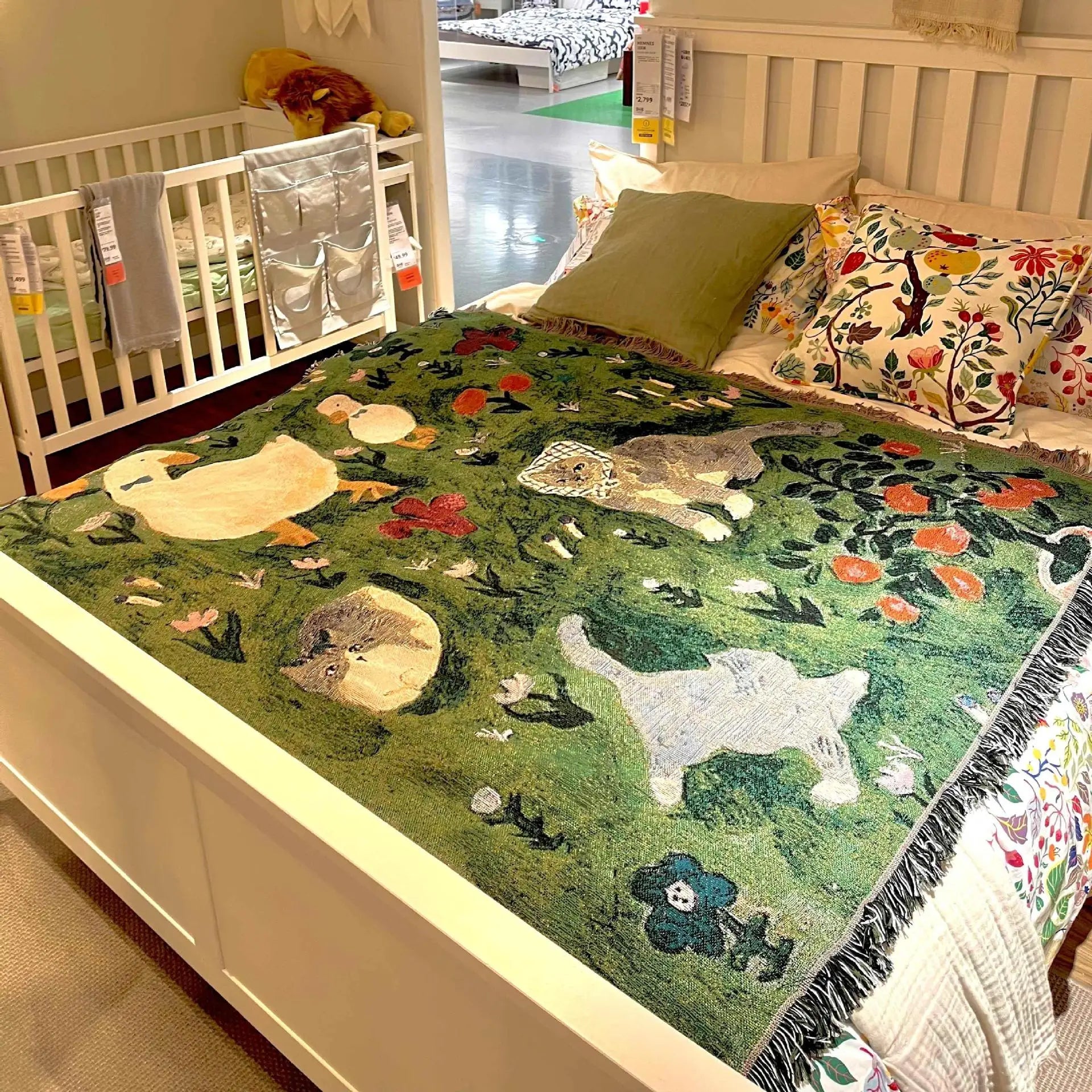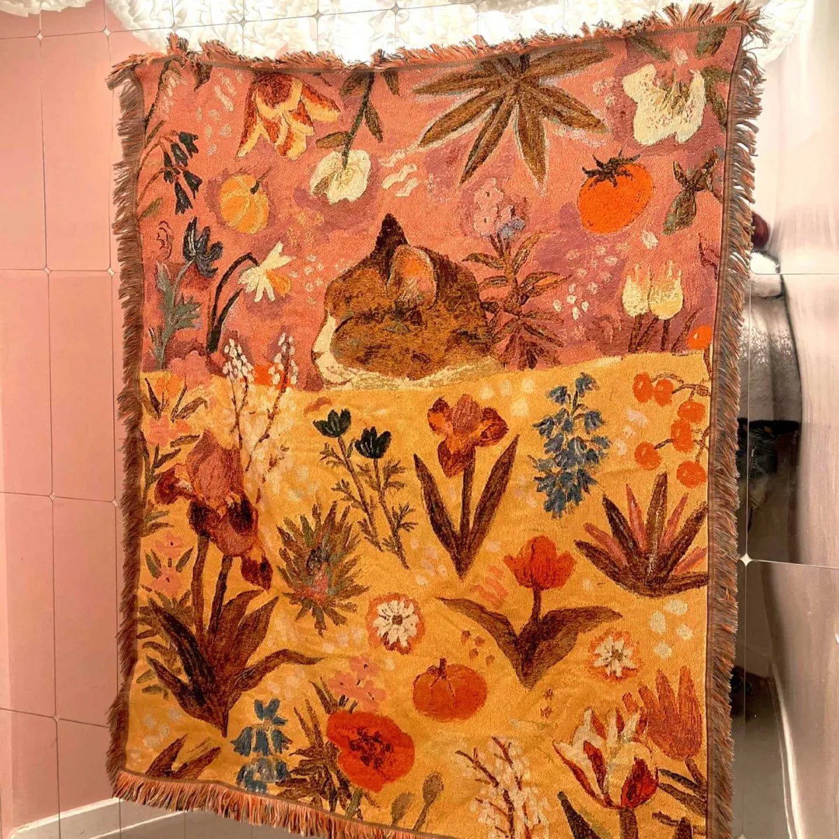 Kawaii Cat Throw Blankets for Beds Cartoon Animal Camping Picnic Mat Outdoor Retro Tapestry Sofa Home Decoration