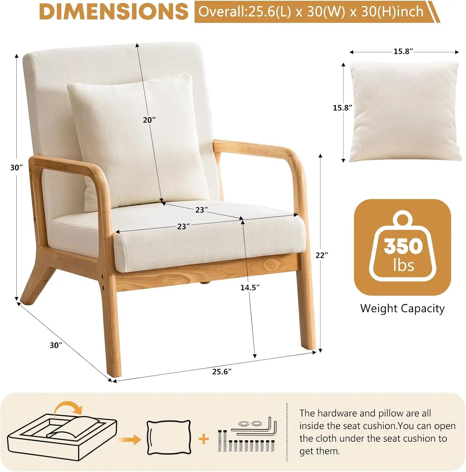 Modern Upholstered Accent Chair with Lumbar Support for Comfort