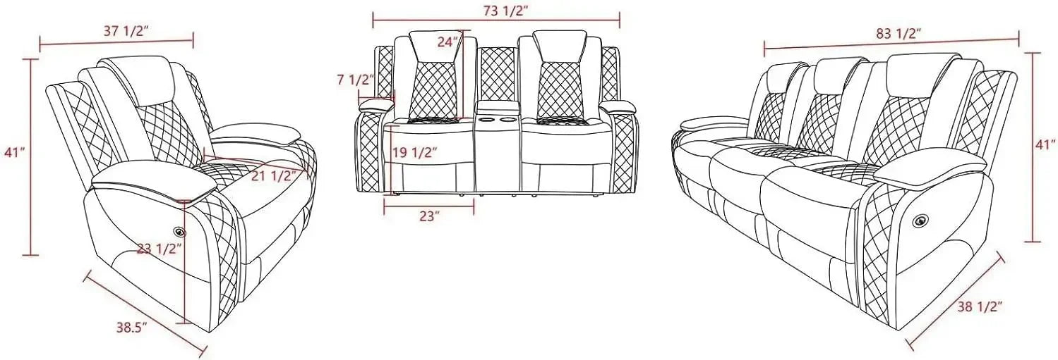 XMSJ Power Air Leather Recliner Sofa Set With LED Lights