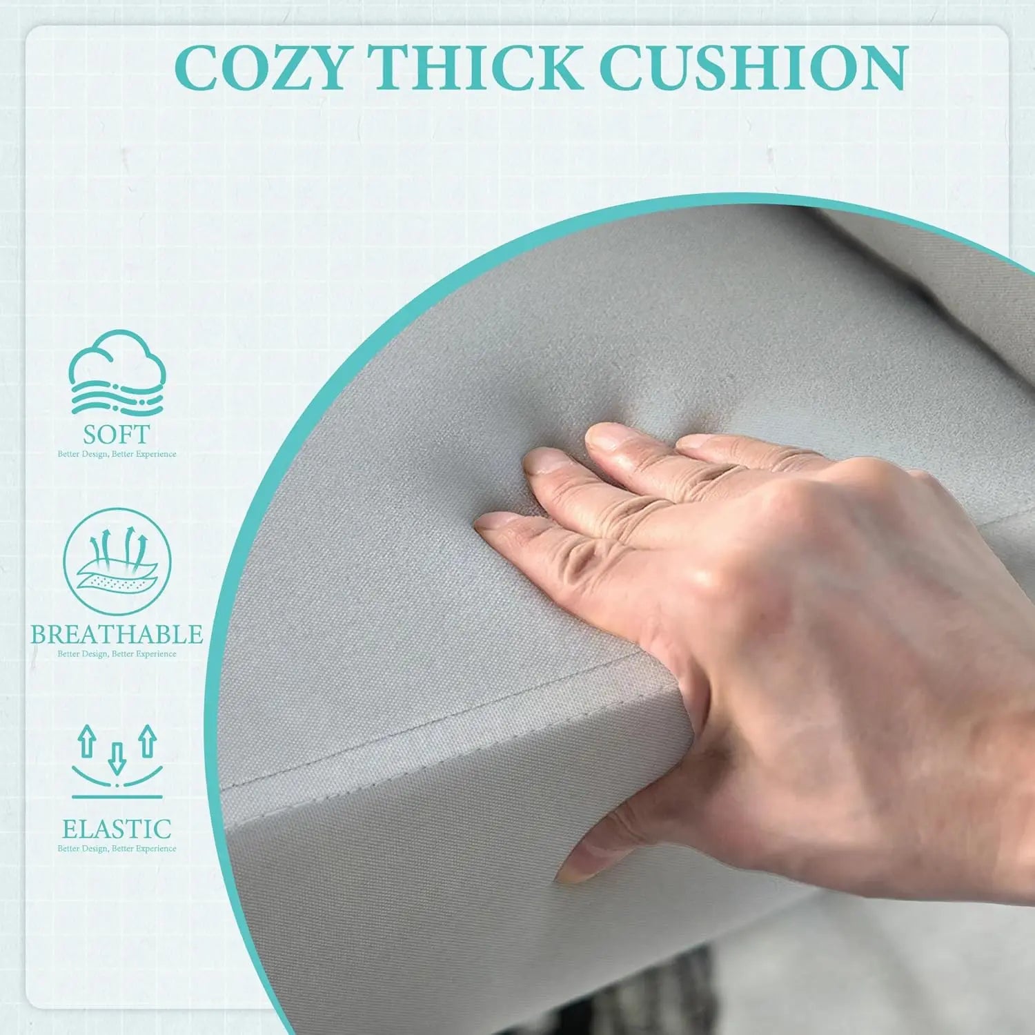 Oversized Design:Cushion thickness: 3.94". Enough sitting area with its seating width of 43.31 inches and seating depth of 24.41 inches. This glider bench seats two adults, offers outdoor form and functional fun with a smooth swing through the breeze to put your mind at ease.