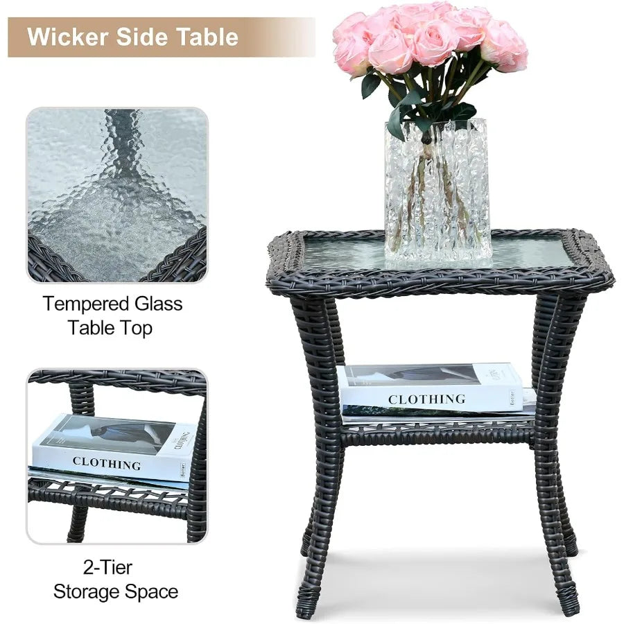 - Versatile set for patios, decks, balconies, or sunrooms, pairing classic wicker charm with modern, low-maintenance upkeep that stays beautiful year-round.