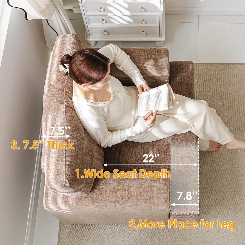 - Deep seat with high-density foam delivers lasting comfort for lounging, reading, or movie nights, while the plush upholstery stays inviting after hours.