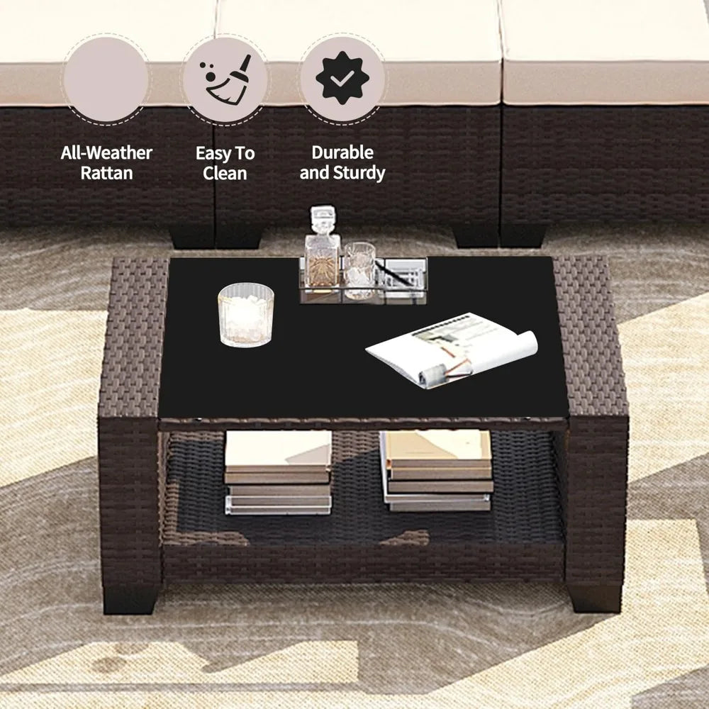 Transform your outdoor living space with the Patio Furniture Set 7 Pieces Conversation Set, a stunning combination of style and comfort. This wicker outdoor sectional sofa is designed to elevate your patio experience, featuring ergonomic armrests and plush cushions for maximum relaxation. Tailored for modern aesthetics, this conversation set complements any outdoor setup, making it perfect for gatherings with family and friends.