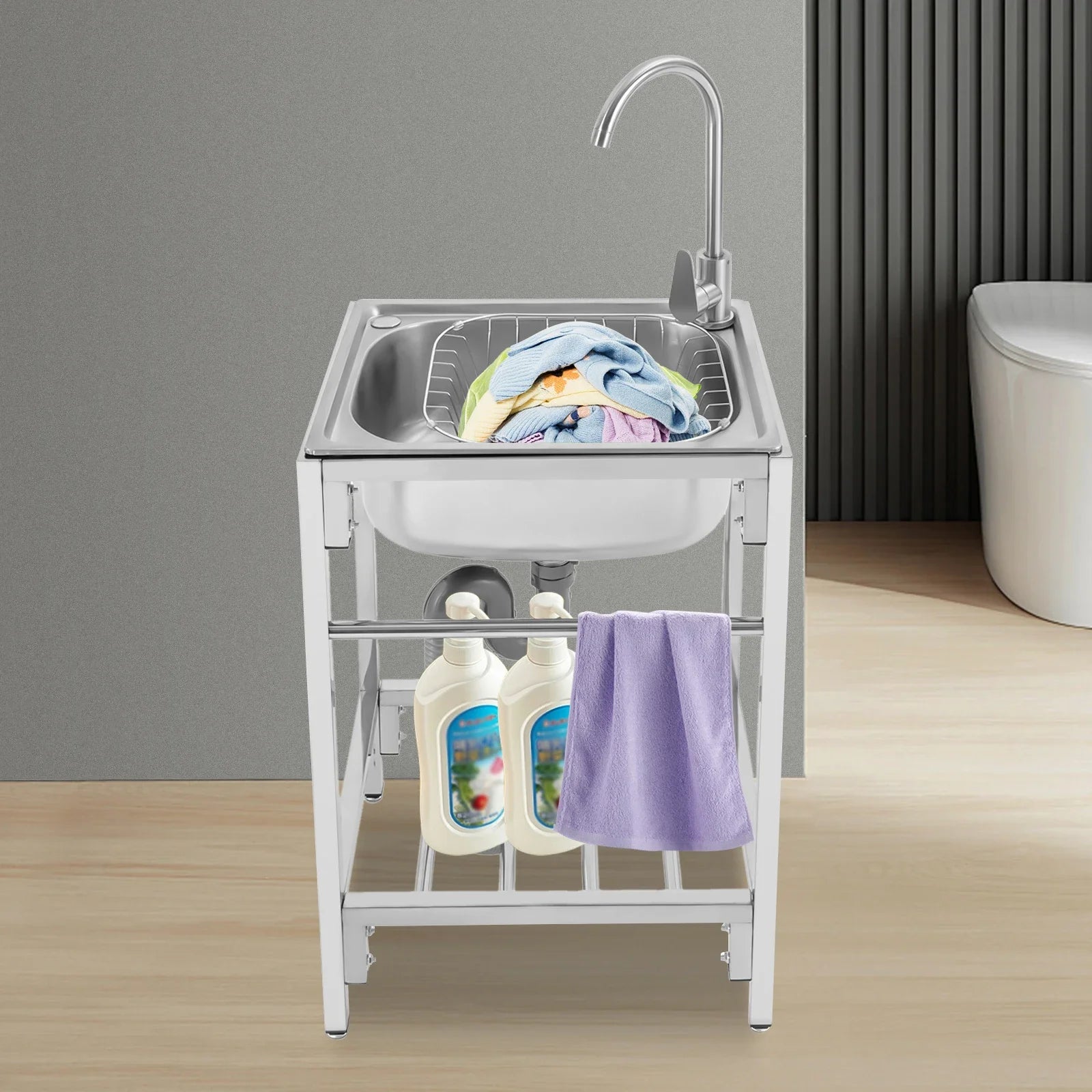 Freestanding Stainless Steel Single Bowl Kitchen Sink with Faucet