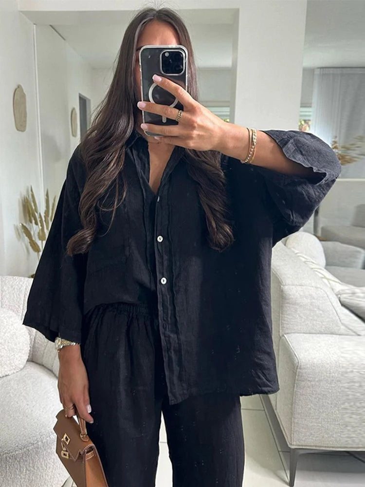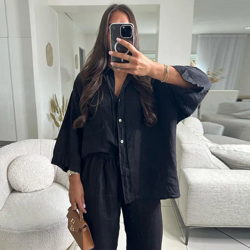 Ebstlcn Solid Women Trouser Suit Sets with Pockets