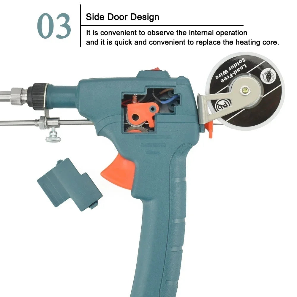 Elevate your soldering tasks with the Stonego Hand Held Internal Heating Soldering Iron, a cutting-edge soldering station that combines automatic tin dispensing with exceptional heating efficiency. Designed for both 110V and 220V operation, this versatile tool is ideal for electronics repairs, DIY projects, and professional welding applications. With its innovative design, the Stonego soldering iron ensures a seamless soldering experience, making it an essential companion for hobbyists and professionals alike.