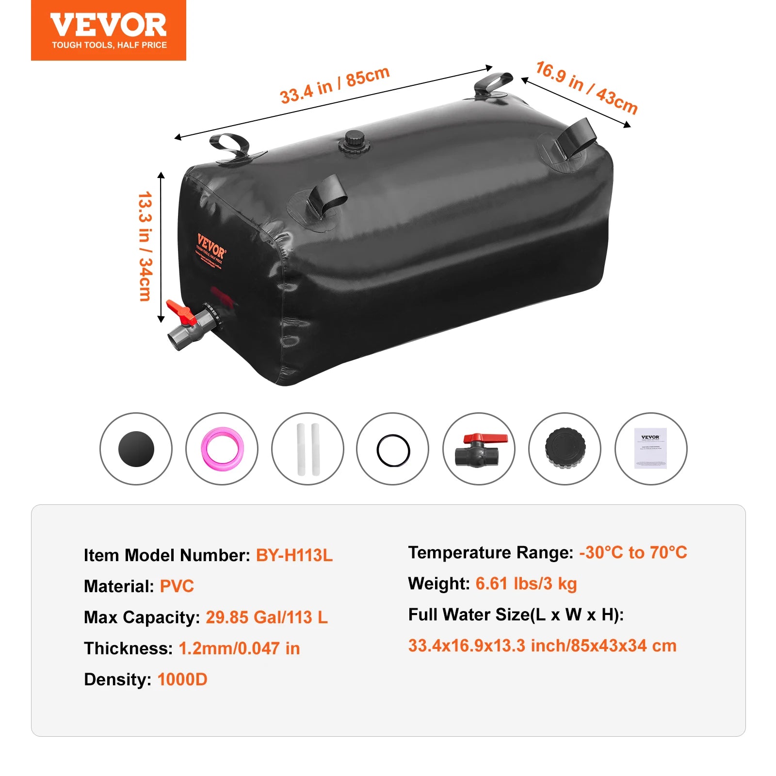 Experience the ultimate convenience with the Portable Water Storage Bladder Tank, your ideal companion for RV trips and outdoor adventures. Designed specifically for versatility and ease of use, this bladder tank allows you to store up to 29.85 gallons (113 liters) of water, ensuring you have access to hydration wherever you go.