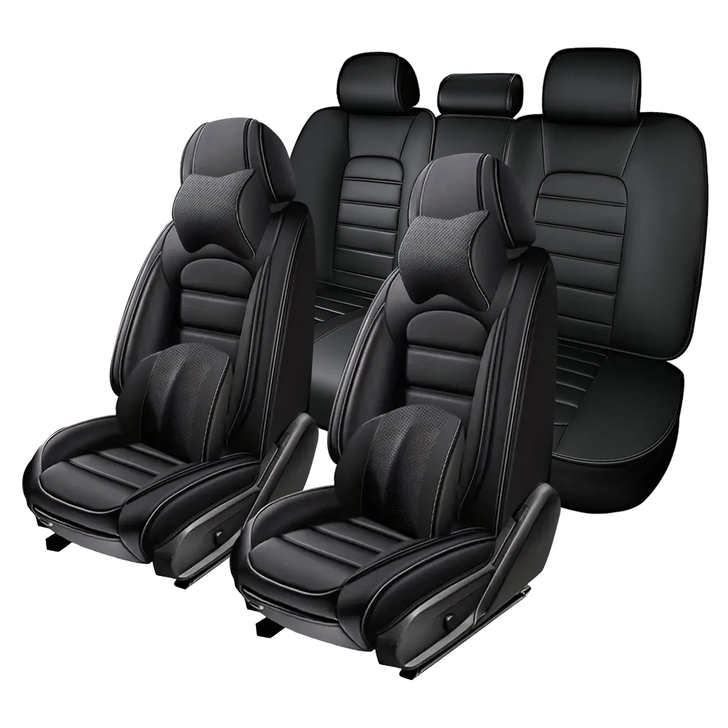 Crafted from high-quality faux leather, this car seat cover set not only enhances the elegance of your vehicle but also ensures long-lasting durability. The thickened leather provides a plush feel while being resistant to spills, stains, and scratches, ensuring your seats remain pristine.
